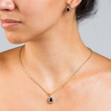 Pendentif et boucles d’oreilles laissent admirer leurs saphirs taille ovale entourés d’une couronne de strass scintillants. Livrée dans son écrin avec certificat d’authenticité, cette parure est resplendissante.