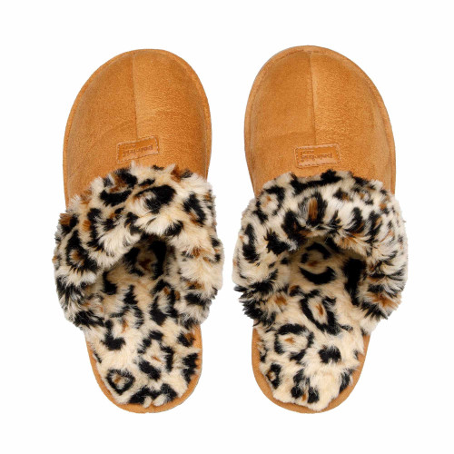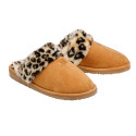 En tissu suédé velouté, ces chaussons sont bordés et tout doublés de fourrure d’imitation léopard pour la touche stylée et une douce chaleur.