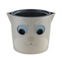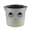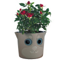 Trop ou pas assez d’eau dans les plantes ? Vous le saurez en regardant les yeux du chat qui décore ce pot de fleurs ! Grâce à un système breveté (flotteur entre pot et cache-pot), ils vous renseignent sur l’arrosage : yeux tristement inclinés vers le bas, l’eau manque ; levés vers le haut, saturation ; centrés, l’humidité est optimale !