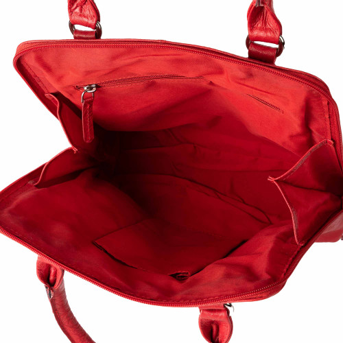 Confectionné en cuir de buffle pleine fleur embossé, ce sac à main d’un coloris rouge rubis très féminin laisse épanouir de jolies fleurs. Mieux, grâce à ses 2 soufflets et sa fermeture zippée intégrale vous accédez très facilement à vos affaires.