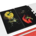 En verre trempé extrêmement résistant, ces protège-plaques au savoureux décor préservent des chocs, rayures et salissures les tables de cuisson (électrique, vitrocéramique/induction). Hygiéniques et ne retenant pas les odeurs, ce sont aussi des plans de travail supplémentaires propres d’un coup d’éponge.