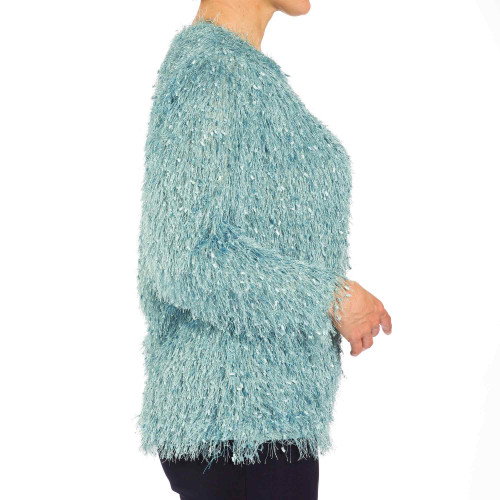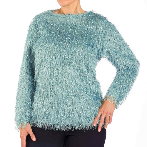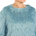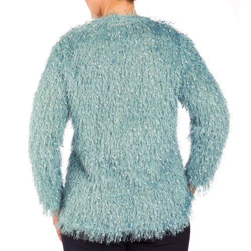 C’est la maille star cette saison : à la fois précieuse et fantaisie grâce à ses longs fils «plume» irisés et ses «confettis» satinés, elle donne du pep’s et de l’allure à la silhouette.