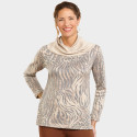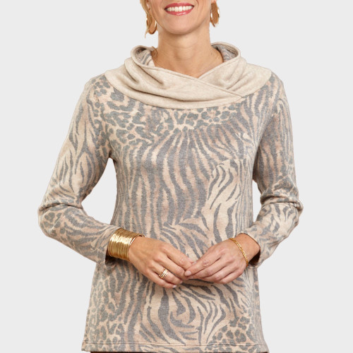 Repoussez les rigueurs de l’hiver par la douceur avec ce pull venu d’Italie. Résolument tendance avec ses motifs félins et son large col asymétrique, sa maille est tricotée dans un harmonieux mélange de fibres qui la rendent moelleuse, légère et chaleureuse.