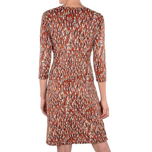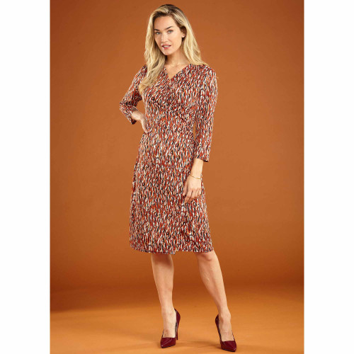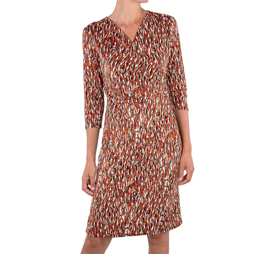 Son imprimé stylisé aux accents félins et ses couleurs chaudes rehaussées de filaments dorés en font déjà un petit bijou d’élégance… tout comme sa coupe cache-cœur avec effet drapé sur la taille qui galbe idéalement la silhouette. Et pour l’aisance au porter, sa maille fluide est extensible.