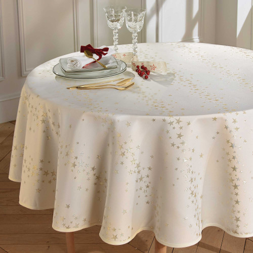 Pour accompagner les mets délicats des Fêtes, habillez votre table de cette nappe ivoire ponctuée d’étoiles dorées tissées. Chic mais aussi facile à vivre, son tissu satiné est antitache, quasi infroissable et sèche en un clin d’œil.