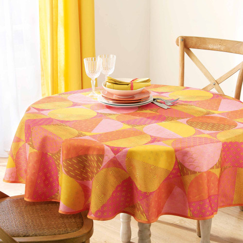 Lumineuse avec son camaïeu de rose, orange, jaune... cette nappe est un bijou de propreté ! Antitache, souple et résistante, elle se nettoie facilement.
