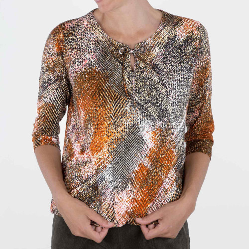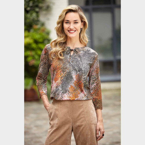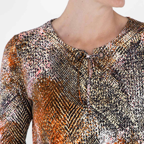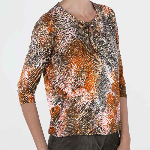 Agréable à porter avec son toucher doux et sa maille extensible pour un maximum de confort, résolument féminin avec son imprimé reptile, ses détails qui subliment le décolleté et sa base blousante qui flatte la silhouette, c’est le top des tops !