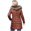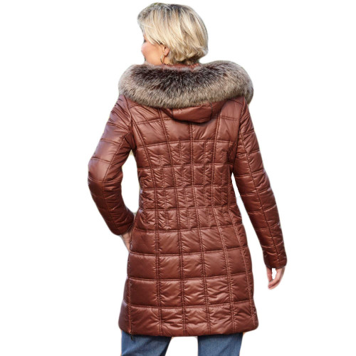 Actuelle avec son coloris praline irisé, bien chaude (doublée et ouatinée) en restant légère, elle cache un autre atout séduction : son jeu de découpes qui amincit la ligne. Ses finitions sont étudiées pour le confort et la protection : fermeture zippée sous patte pressionnée et 2 fentes zippées côtés dos à ouvrir pour s’asseoir sans la froisser.