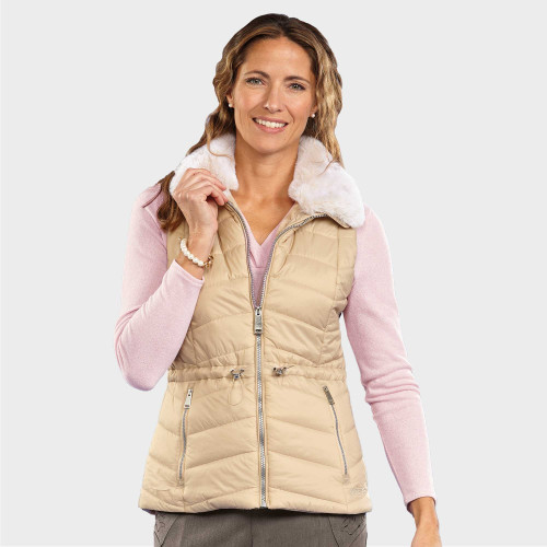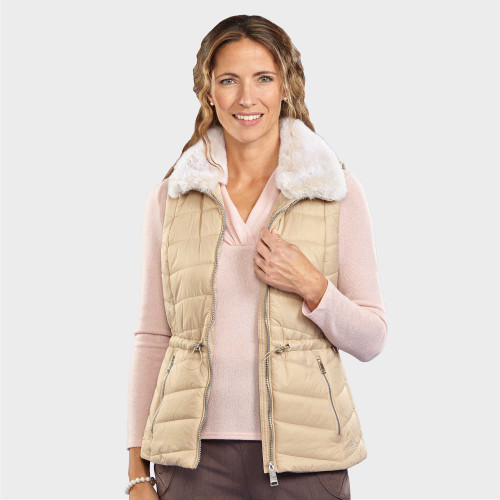 Poids plume mais bien chaude grâce à son généreux ouatinage Warmloft, cette doudoune sans manches est aussi ultra féminine : découpes amincissantes, ligne à cintrer comme bon vous semble (cordon de serrage à la taille), col en "fausse fourrure" toute douce !