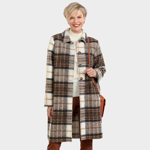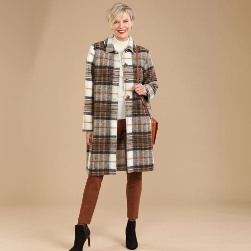 ... pour ce beau manteau à carreaux, succès de l’hiver 2024 ! Bien chaud, il est coupé dans une étoffe riche en laine, tout en restant léger au porter. Sa coupe légèrement oversize ajoute une touche tendance à son élégance classique.
